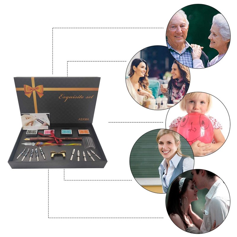 ASXMA Calligraphy Pens Gift Set - Personalized Caligraphy Pen Kits Calligraphy Set For Beginners&professional Include Glass And Wooden Dip Pen,Pen Holder,Various Sizes Of Nibs Etc