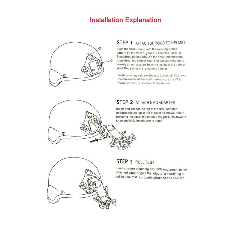 - Package includes: 1 x helmet nvg mount; 3 sets of bolts and screws.