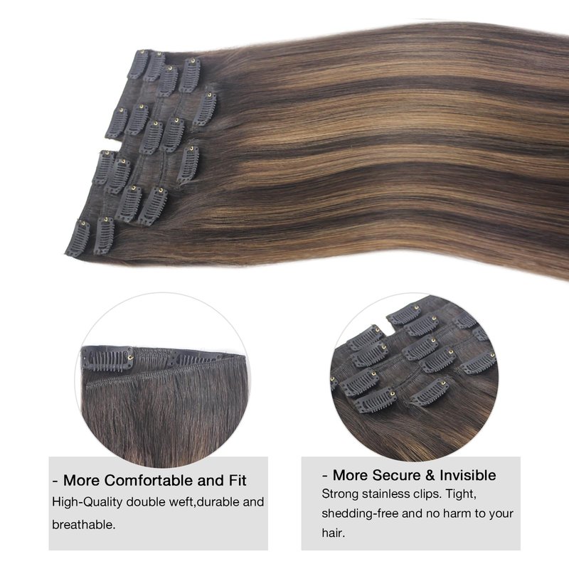 - 【Easy and Secure to Wear】Our hair extensions human hair feature stainless steel clips that are securely sewn and covered with a layer of soft rubber so they can be firmly attached to your hair without slipping or tangling and we'll give 8 clips for free to you as a replacement. You can easily apply and remove them by yourself.