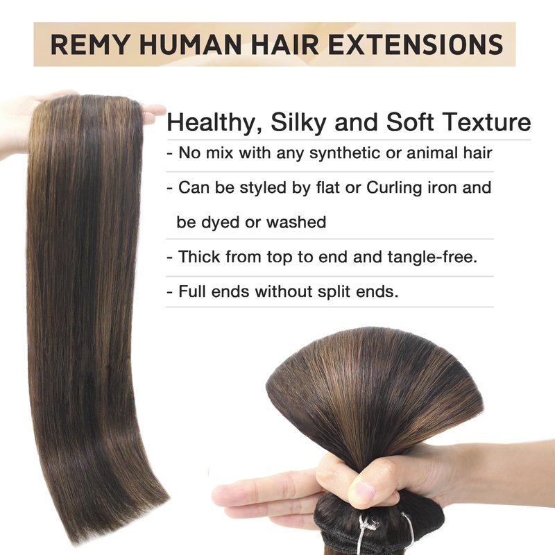 - 【Perfectly Color Match】Our real human hair extensions clip ins can seamlessly blend with your natural hair. We recommend selecting a shade that matches your hair roots to ensure the best color match. Please know that slight color variation may occur due to differences in monitor settings. If you need help with color selection, please don't hesitate to contact us.