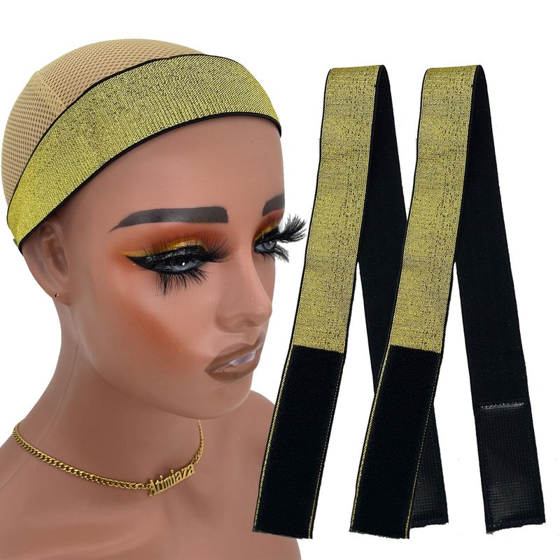 Atimiaza 2 Pcs Elastic Bands for Wig, Gold Lace Melting Band, Wig Band for Melting Lace, Melting Band for Lace Front, Melt Band for Lace Wigs, Edge Wrap to Lay Edges (Gold, Pack of 2)