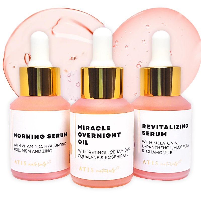 Unveil the radiant, youthful complexion you've always desired with ATIS Naturals Premium Serum Trio - a complete skincare regimen designed to transform your skin from morning to night.