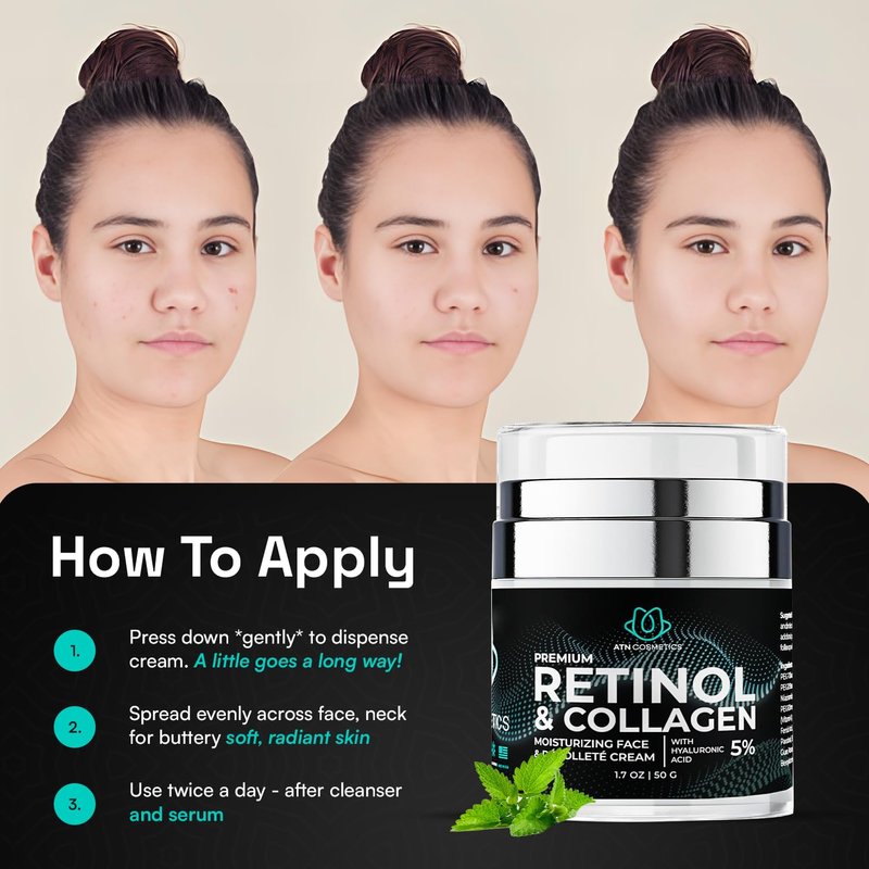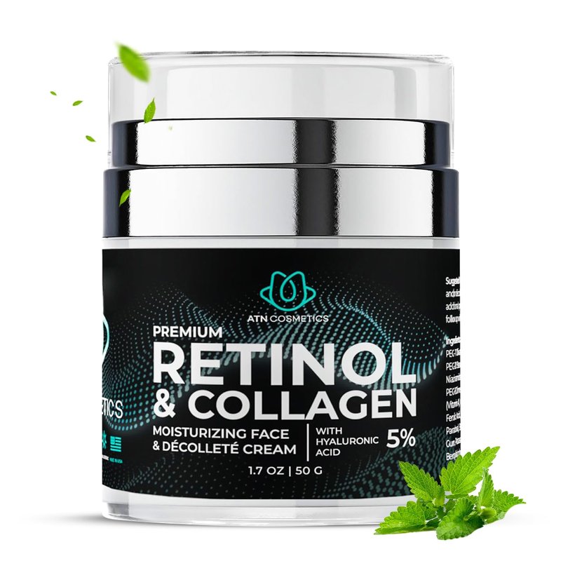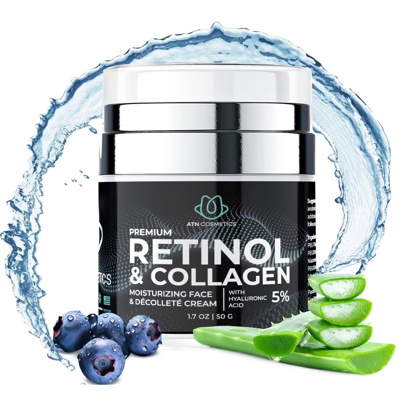 ATN Cosmetics Retinol Cream for Face & Neck, Collagen Moisturizer, Day & Night Cream for Women & Men, Anti Aging, Wrinkle Cream with Hyaluronic Acid, Made in USA