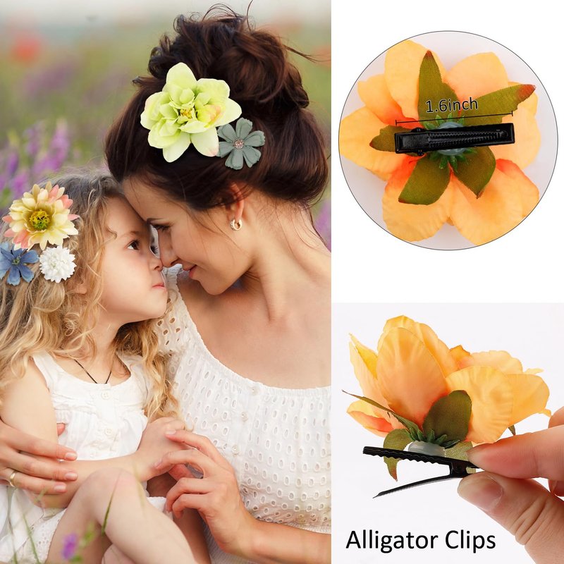 - 【Assortment of Flowers】These clip-on flower barrettes are fantastic for all-season hair accessories! They come in a bunch of sizes, types of flowers and colors. It really helps elevate any hairstyle and instantly boost your mood. They can make an ordinary outfit feel very special.
