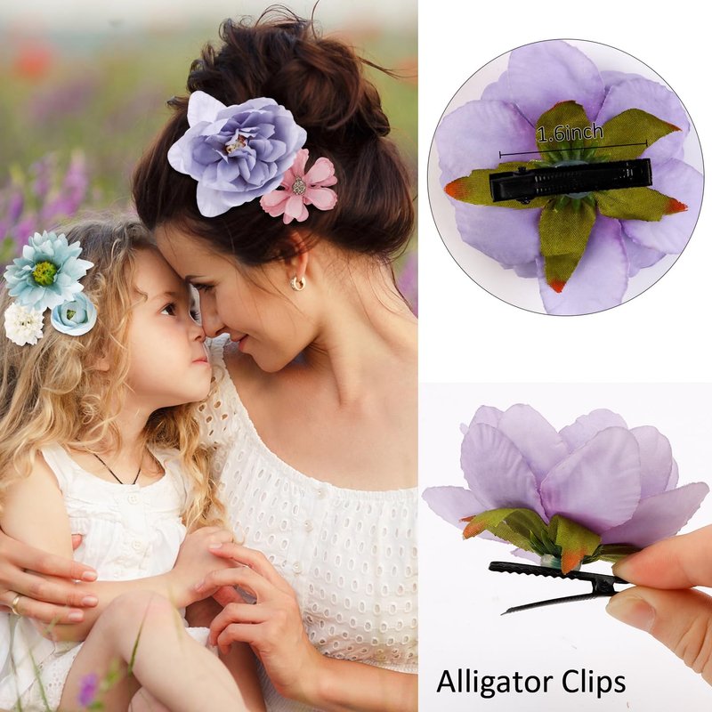 - 【Artificial Flower Hair Clips】3D artificial flower shapes, the flowers that are attached to small alligator clips are quite realistic looking. They're a great way to add a pretty touch to your outfit with practically zero extra effort.
