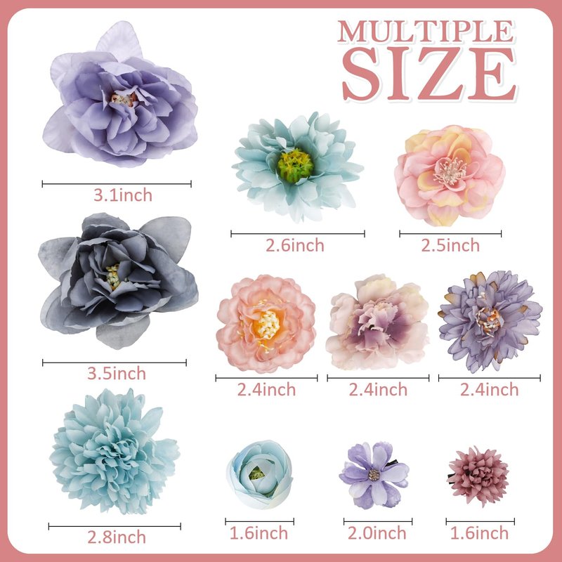 - 【Assortment of Flowers】These clip-on flower barrettes are fantastic for all-season hair accessories! They come in a bunch of sizes, types of flowers and colors. It really helps elevate any hairstyle and instantly boost your mood. They can make an ordinary outfit feel very special.