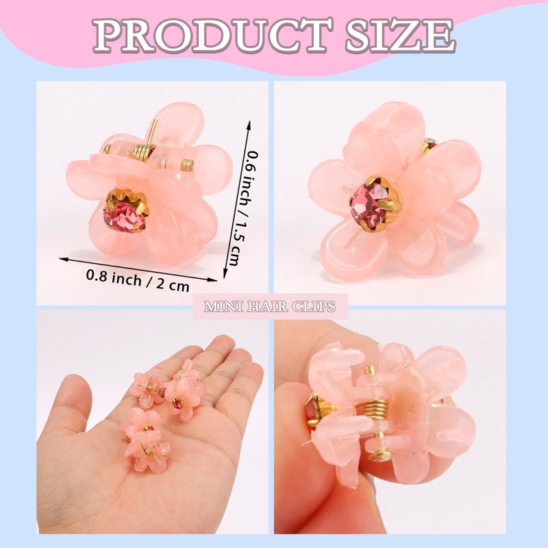 - 【Mini Claw Clips】0.8 * 0.6 inches mini flower hair clips, easy to create different hairstyles, great for thin fine short hair. Hair clips for bangs out of face.