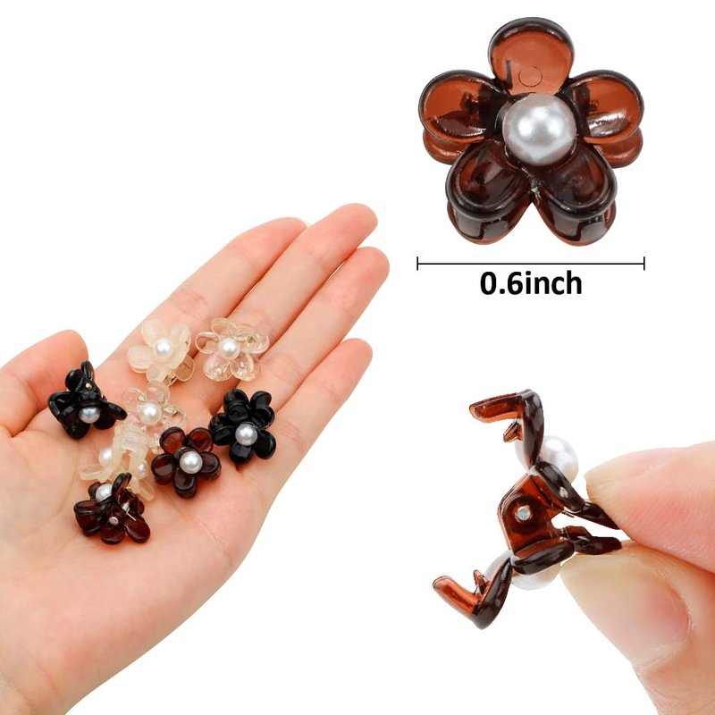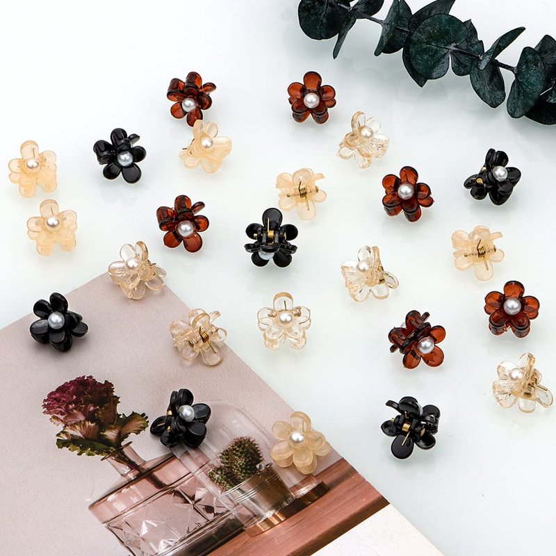 - Cute flower shape with pearls: You’ll get 24 pieces mini flower hair clips, 4 colors available, including black, white, brown, transparent color. Flower claw clips are very beautiful in their elegant design, ideal for girls, teens and women of all ages.