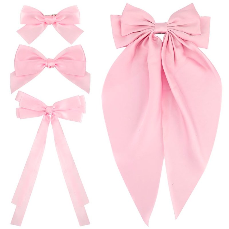 Atoden Pink Hair Bows for Women Girls 4 Pcs Silky Satin Hair Ribbons Oversized Long Tail Bow Hair Clips Hair Barrettes Alligator Metal Clips Big Bowknot Cute Hair Accessories Gifts
