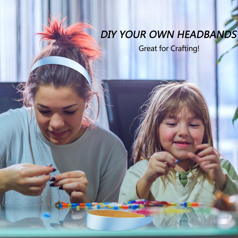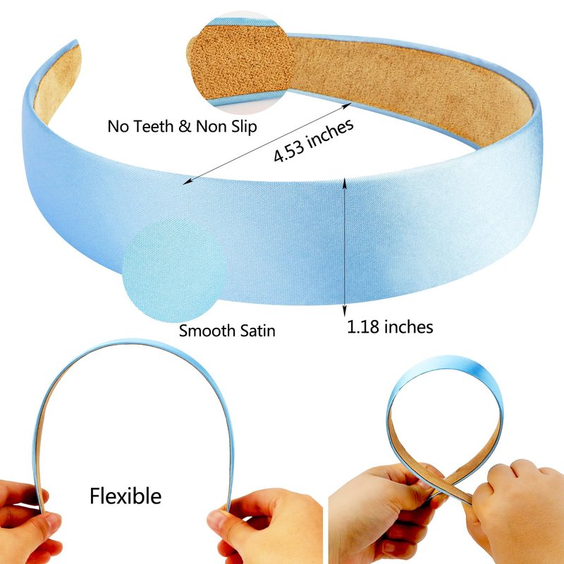 Atoden Satin Headbands for Women Girls Light Blue Headband 1.18 Inch Wide Thin Hard Headbands Non Slip Ribbon Hair Bands Plain Headbands for Crafts DIY Costume Holiday Christmas Gifts