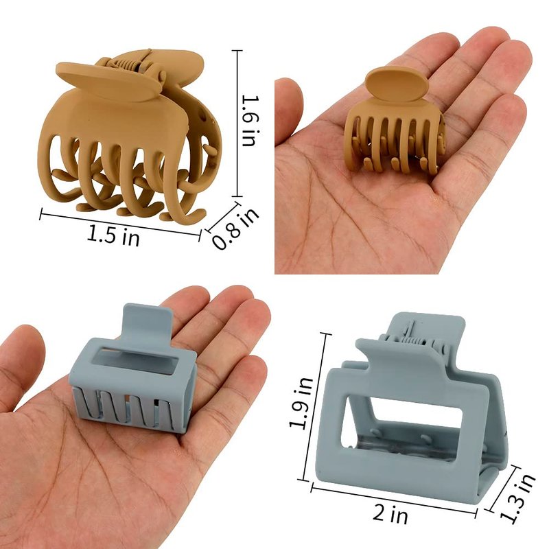- What You Get: You can get 8 pieces solid color hair clips, including 4pcs square hair clips and 4pcs double teeth claw clips. Small Size: 2*1.3*1.9 inches & 1.5*0.8*1.6 inches, great for thin fine hair. Come in a nice variety of matte colors, pretty neutral colors go with everything.