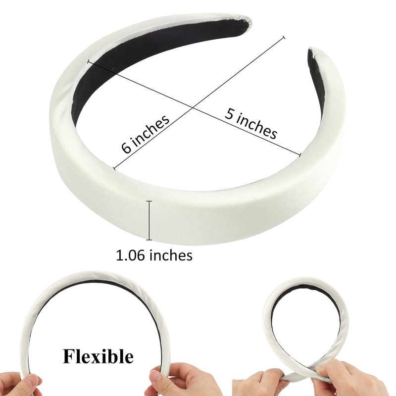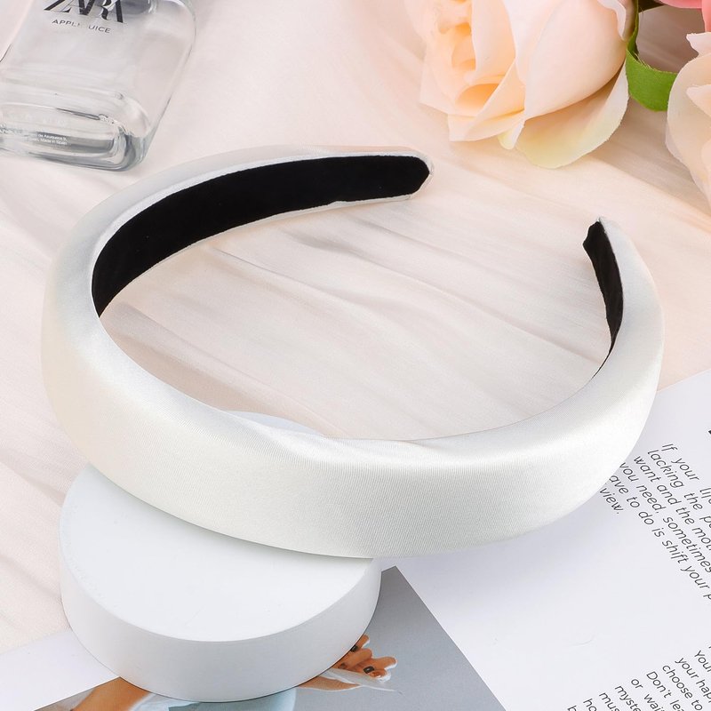 Atoden White Headband Padded Headband Satin Headbands Thick Headbands Plain Head Band Hair Bands Hair Accessories for Women Girls
