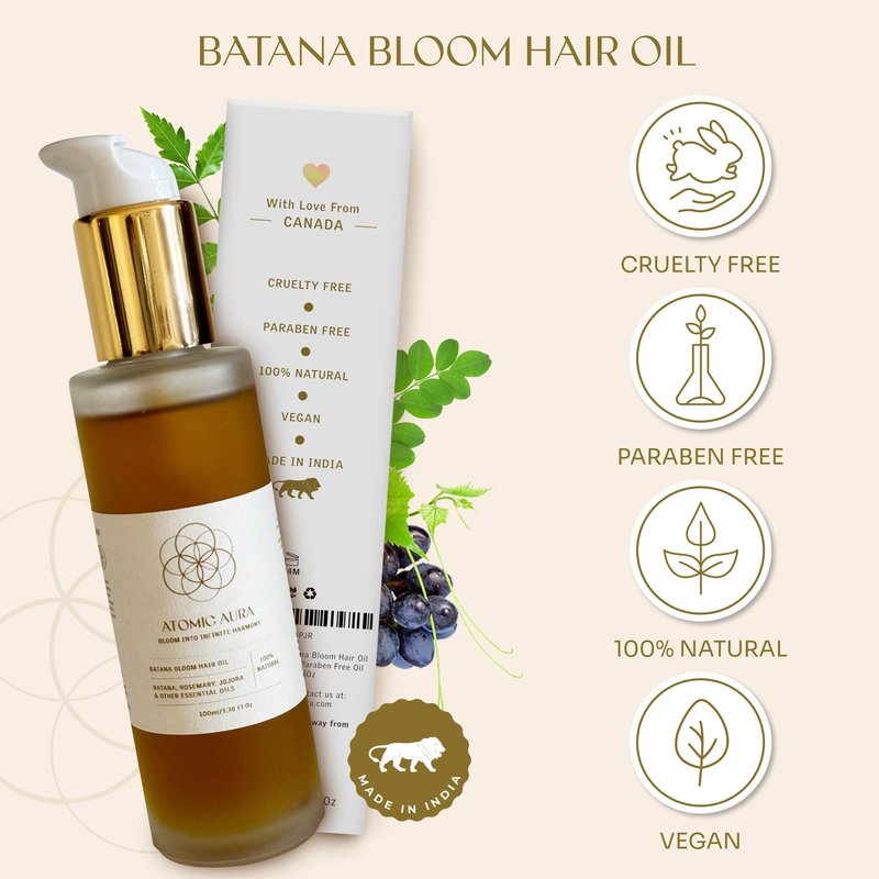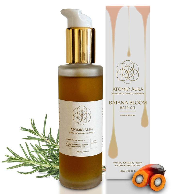 Atomic Aura Batana Bloom Hair Oil with Batana, Rosemary, Jojoba, Argan, Castor, Bhringraj, Organic, SLS-Free, Cruelty-Free, Paraben Free Oil (100 ml/ 3.4 Fl Oz)