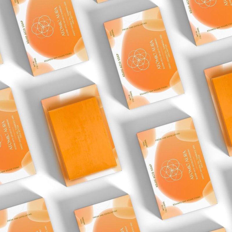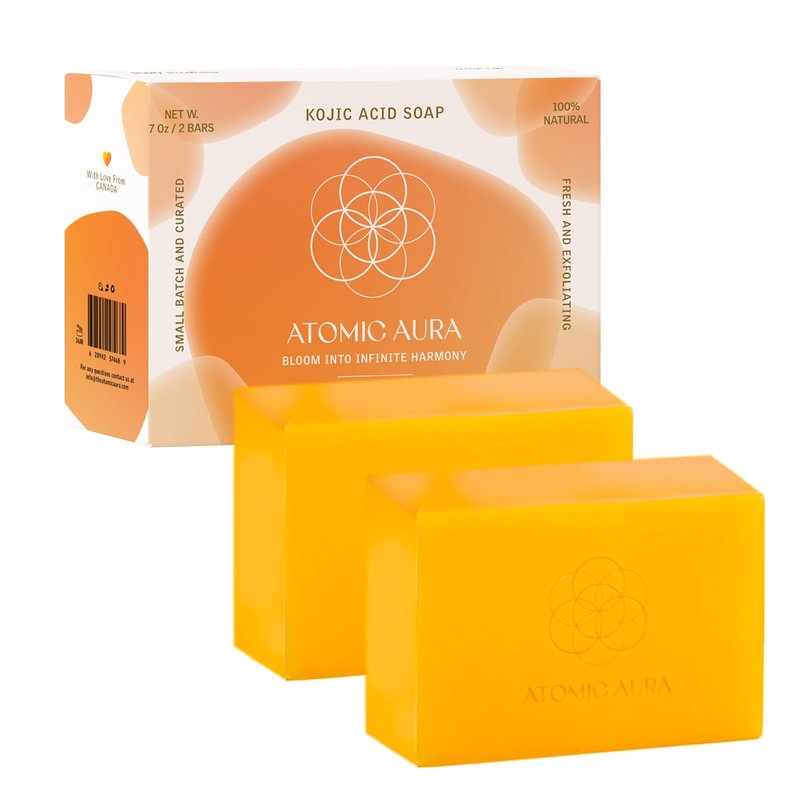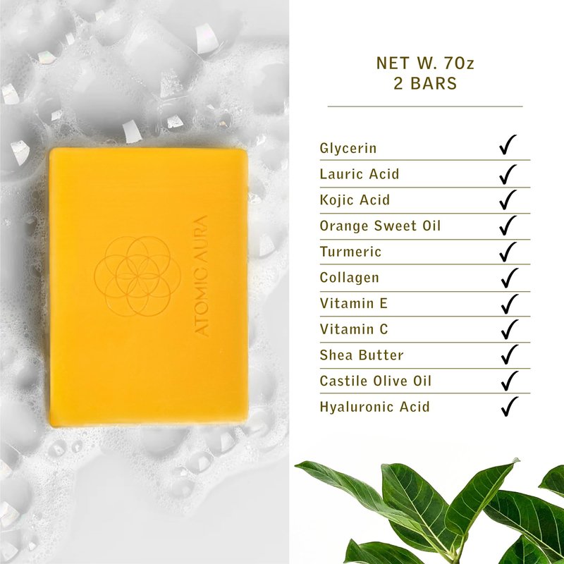 Atomic Aura Kojic Acid Dark Spot Remover Soap Bars with Turmeric, Collagen, Vitamin C, Shea Butter, Olive Oil, Vitamin E with Hyaluronic Acid for Pigmentation, Fine lines, Scars (2 Pack)