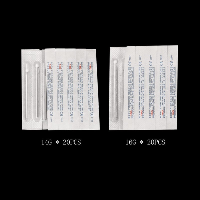 ATOMUS Body Piercing Needles, 14G 16G Stainless Steel Sterile Disposable Ear Nose Navel Nipple Lip Piercing Needles (20pcs 14G + 20pcs 16G)