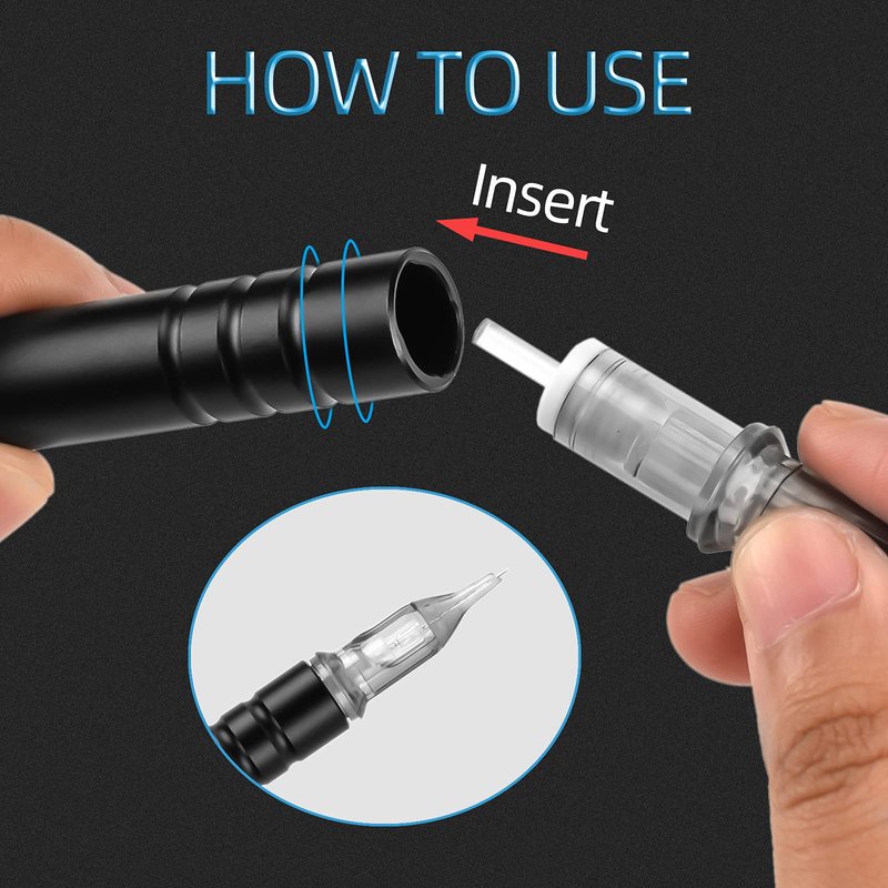 - ★ Made by Aluminum Alloy, strong and sturdy. Lightweight hand poke cartridge pen makes the tattoo process more simple and relaxing. Can work together with all types and sizes’ tattoo cartridges needles.