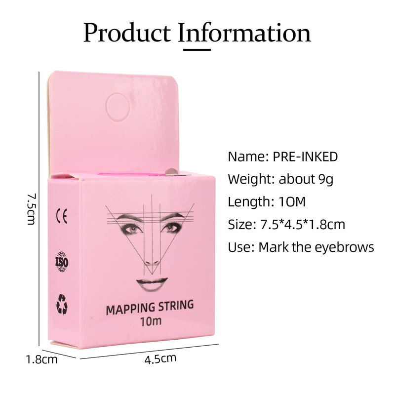 - ★ Pre-inked: 3 colors in total: Black, white and pink. All eyebrow mapping strings are pre-marked with hypoallergenic cosmetic grade pigment.