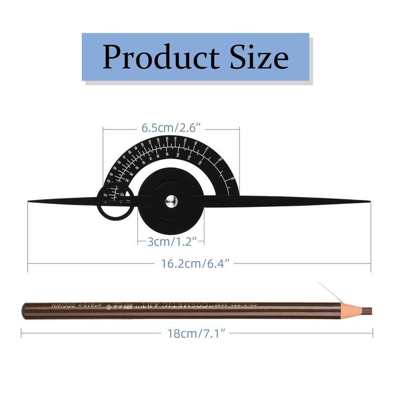 - Package Includes 1pc stainless steel eyebrow ruler and 1pc brown eyebrow pencil. You can quickly locate the shape of your eyebrows and draw the shape to color them, the eyebrow gauge is perfect for measuring eyebrows with tattoo microblading.