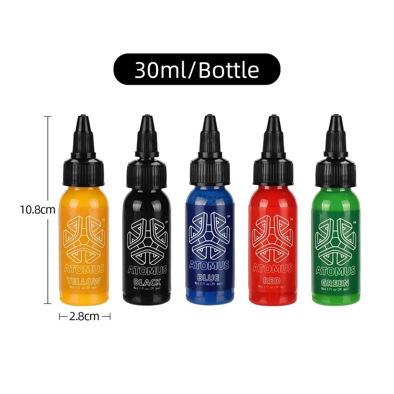 ATOMUS Tattoo Ink 5 Colors 1oz 30ml Tattoo Supply Black Pigment Natural Plant Tattoo Ink Pigment Permanent Makeup Tattoos Pigment