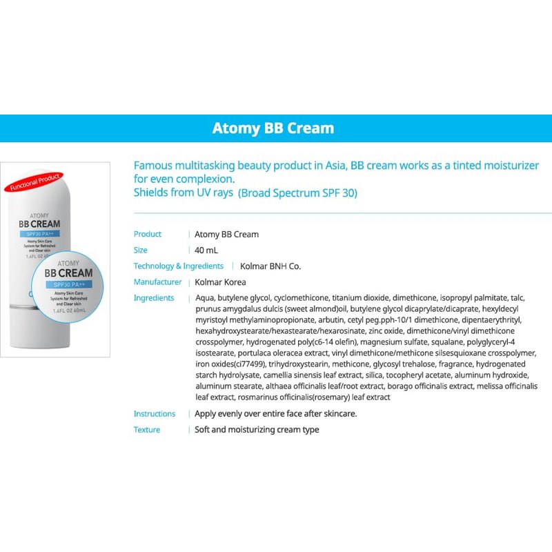 Atomy BB Cream - Skin Moisturizer for Face [Set of 2]