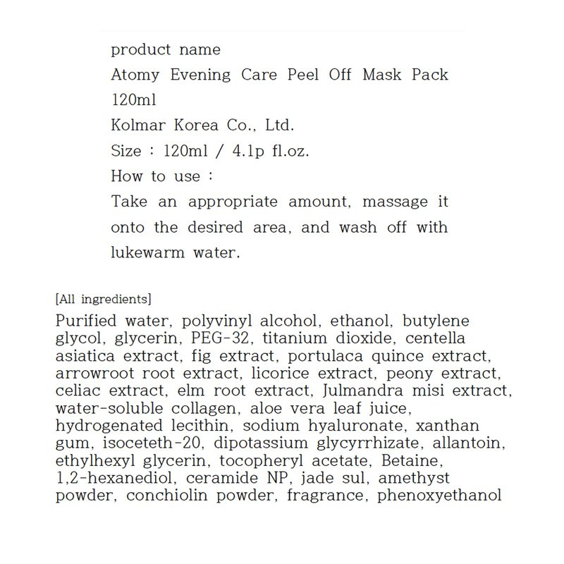 Atomy Evening Care Peel Off Mask Pack - Pore Tightening, Clarifying, Firming for Skincare Routine, Made in Korea