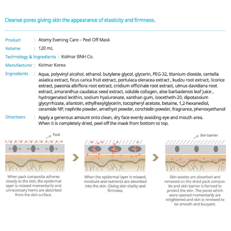 Atomy Evening Care Peel Off Mask Pack - Pore Tightening, Clarifying, Firming for Skincare Routine, Product From Korea