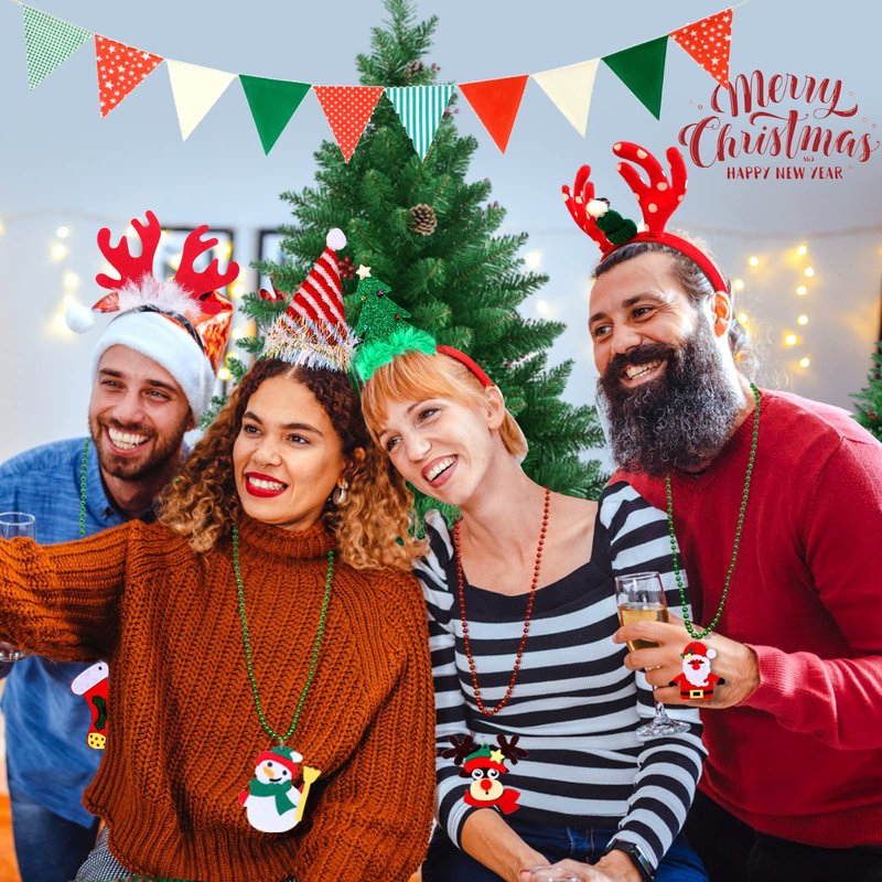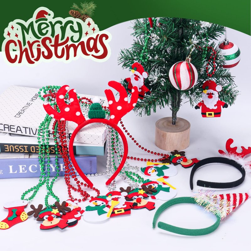 Atonofun 22 Pcs Christmas Party Favors, Christmas Costume Accessories with Xmas Beaded Necklaces Christmas Headband for Kids Christmas Party Gifts Decorations