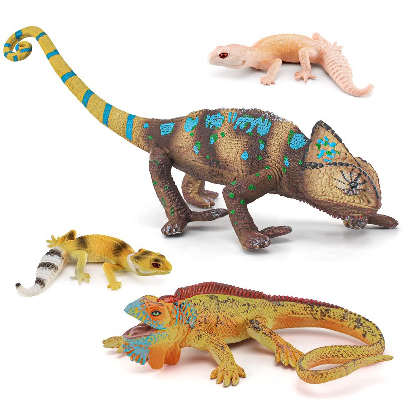 Atralo Service Reptile Animal Model Playsets 4 PCS Lizards Figure Party Favors Toys Cake Toppers Christmas Birthday Gift for Boys Girls Kids Toddlers