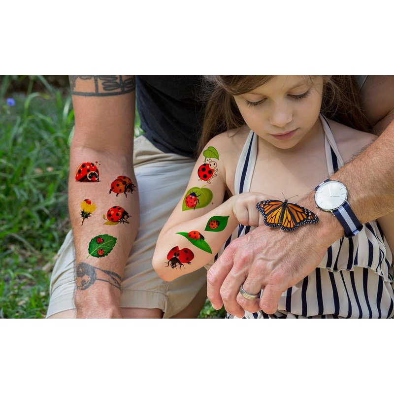 - Great for face,cheek,arm, hand ,ankle or anywhere of your body.Keep them for a long time,tattoos will last for two days up to a week. Ladybird themed temporary tattoos can attract children's attention and create an atmosphere of total joy.