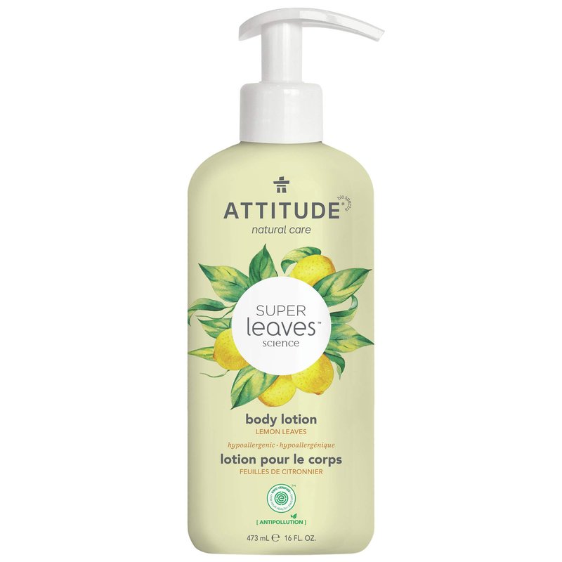 ATTITUDE Body Lotion, EWG Verified Moisturizer, Vegan Skin Care Products, Non-Greasy, Hydrating for Dry Skin, Cruelty Free, Refreshing, Lemon Leaves, 16 Fl Oz