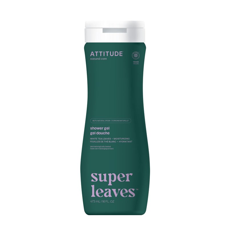 ATTITUDE Body Wash, EWG Verified Shower Gel, Dermatologically Tested, Plant and Mineral-Based, Vegan Personal Care Products, White Tea Leaves, 16 Fl Oz