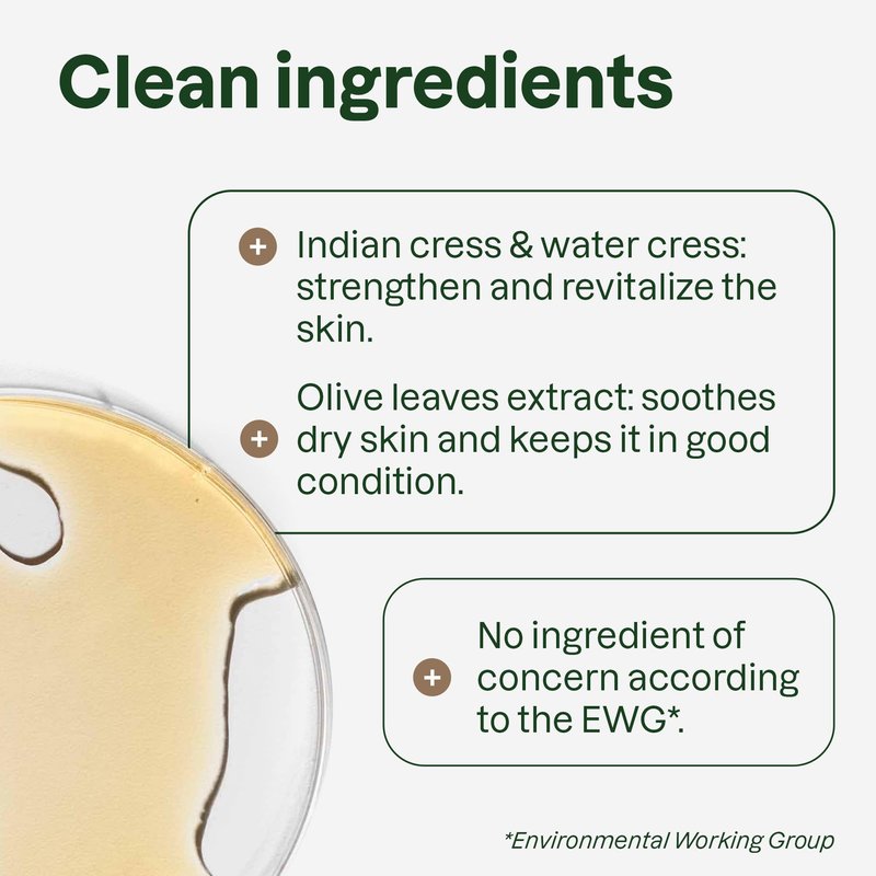 - NATURALLY SOURCED INGREDIENTS: Made with 98.8% naturally sourced ingredients* including an olive leaf extract that soothes dry skin and helps restore suppleness and firmness, as well as watercress and Indian cress extracts known to revitalize dry skin and restore the skin’s suppleness *According to ISO 16128 standards