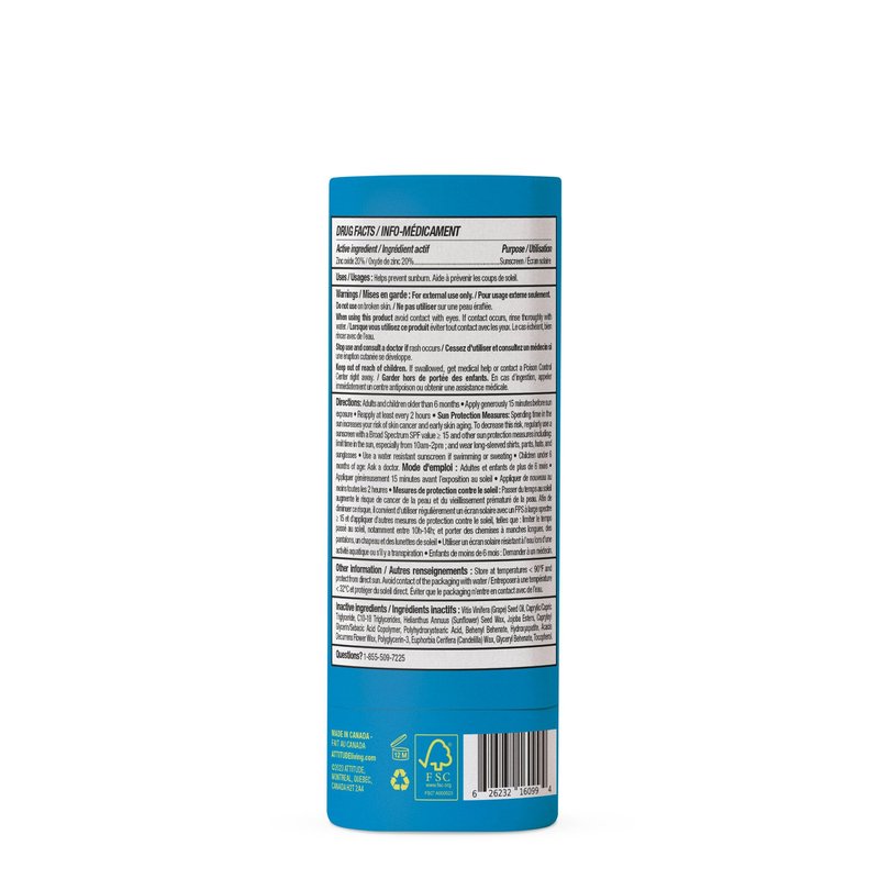 ATTITUDE Mineral Face Sunscreen Stick for Kids, SPF 30, EWG Verified, Plastic-Free, Broad Spectrum UVA/UVB Protection with Zinc Oxide, Dermatologically Tested, Vegan, Unscented, 0.7 Ounce