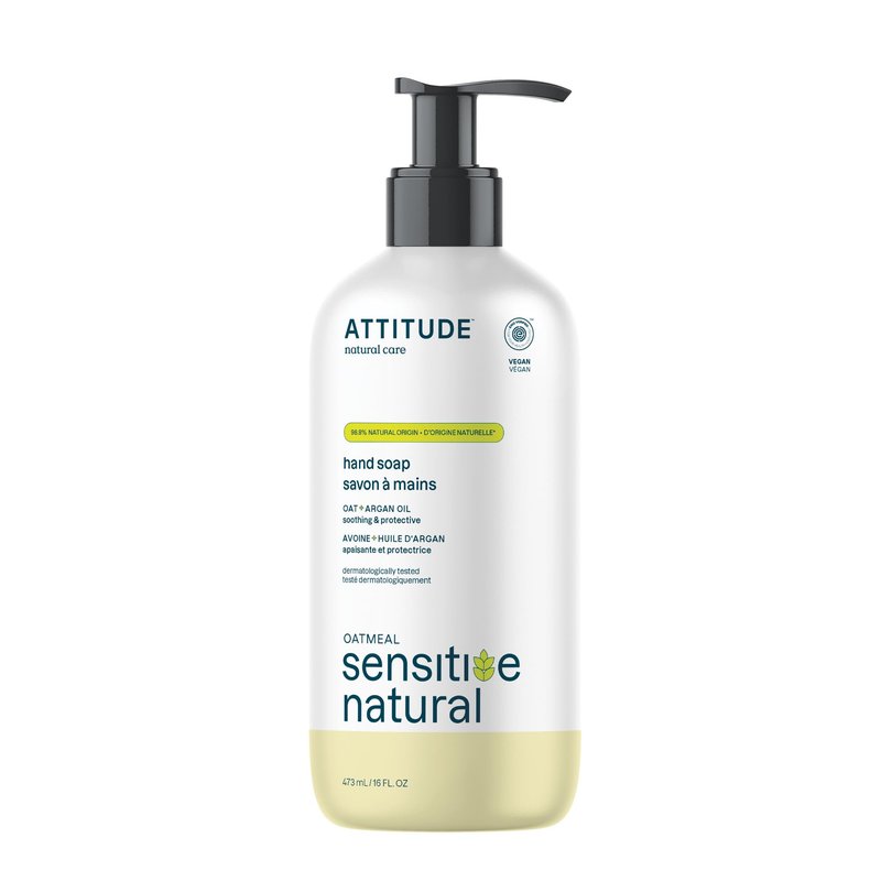 ATTITUDE Moisturizing Hand Soap for Sensitive Skin Enriched with Oat and Argan Oil, EWG Verified, Plant and Mineral-Based Ingredients, Vegan & Cruelty-free, 16 Fl Oz