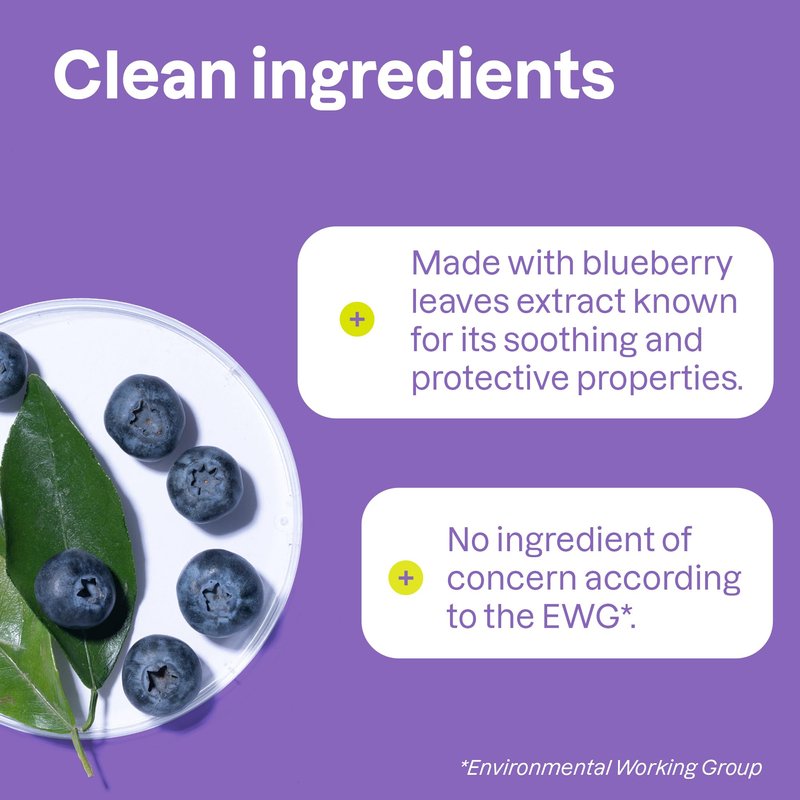 - Made with Blueberry leaf extract, known for its remarkable calming, protective and antioxidant properties