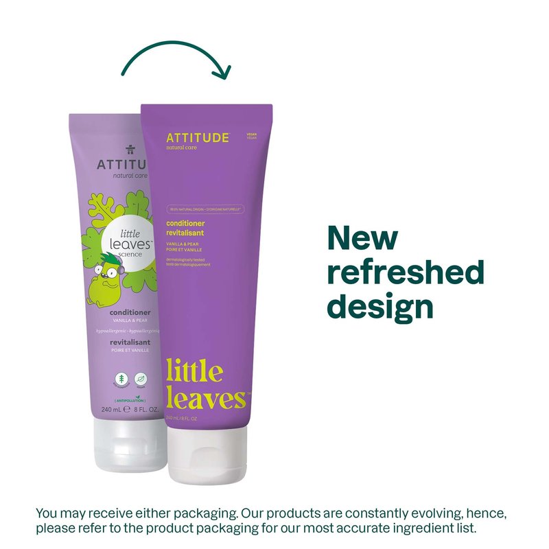 ATTITUDE Natural Conditioner for Kids, Hypoallergenic, Vegan, Plant- and Mineral-Based, Vegan and Cruelty-free, Vanilla and Pear, 8 Fl Oz (11115)