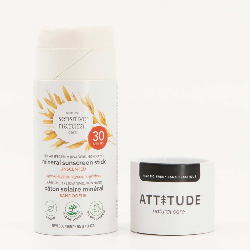 ATTITUDE Plastic-Free Mineral Sunscreen Stick for Sensitive Skin, Broad Spectrum UVA/UVB with Zinc Oxide, Hypoallergenic, Vegan and Cruelty-free, SPF 30, 3 Ounces