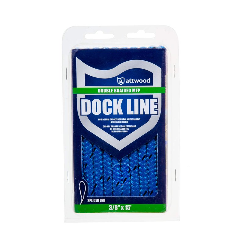 Attwood 11702-7 Double Braided Multifilament Polypropylene (MFP) Dock Line, 3/8-Inch Thick, 15 Feet Long, Pre-Spliced One End, Blue