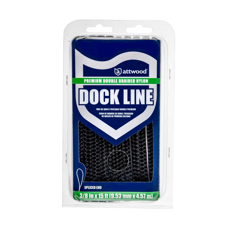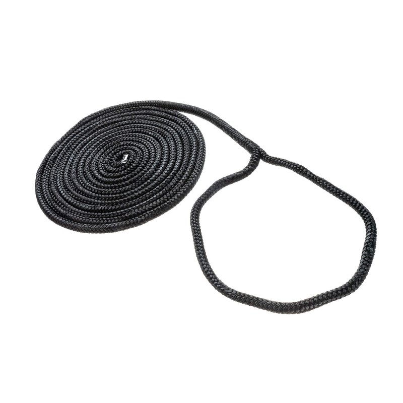 Attwood 117608-7 Premium Double Braided Nylon Dock Line, 3/8-Inch Thick, 20 Feet Long, Pre-Spliced One End, Black