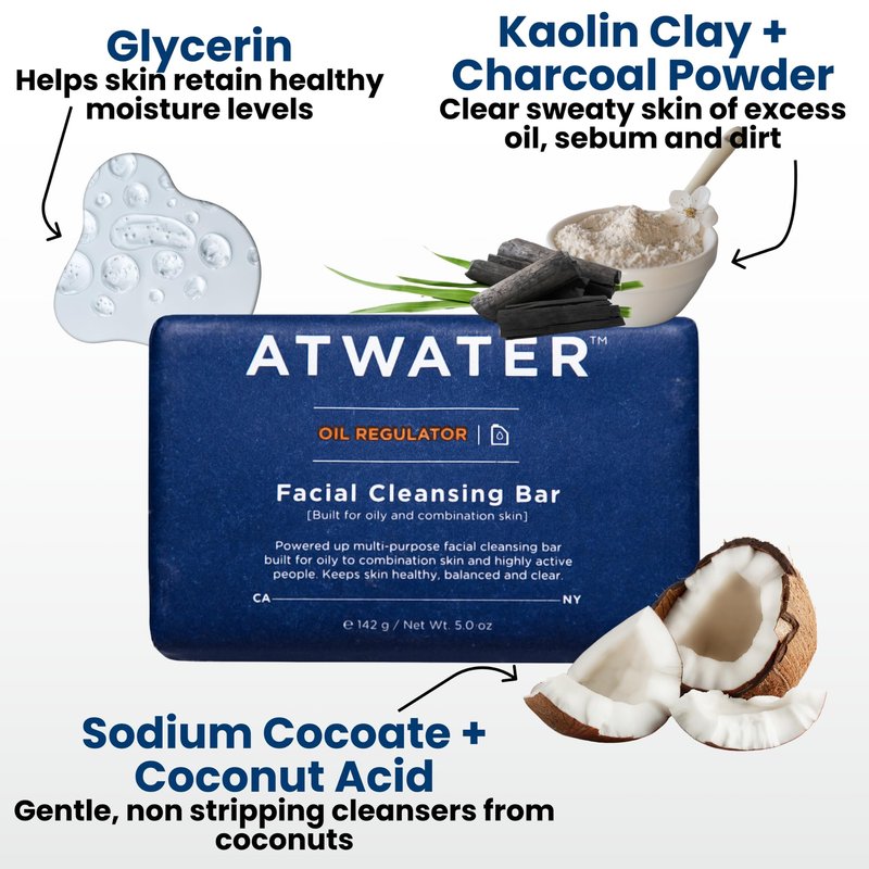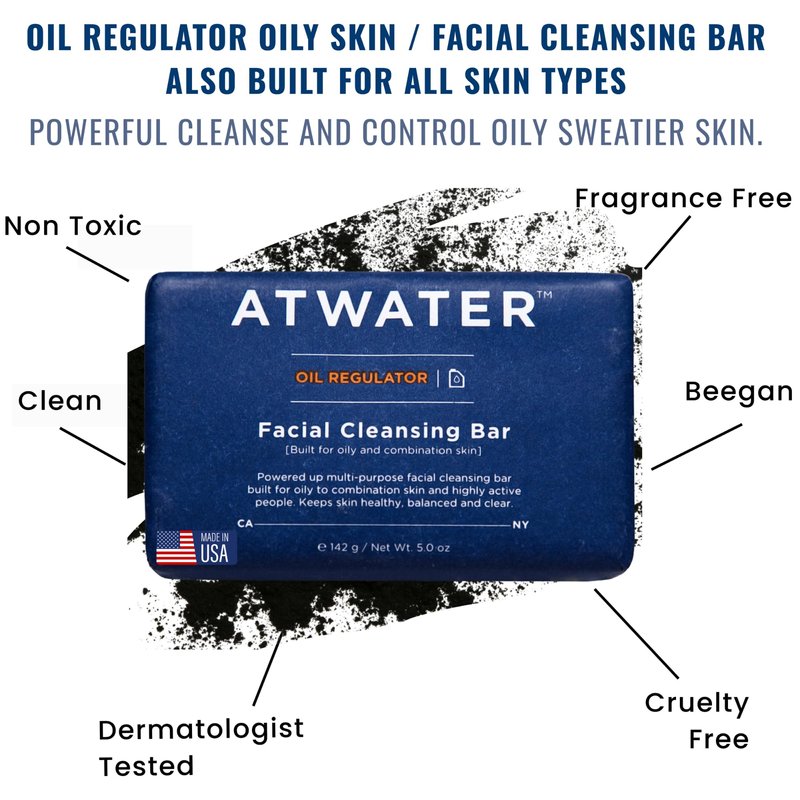 ATWATER Charcoal Facial Cleansing Bar for Oily to Combination Skin, Sulfate Free Rich Lathering Charcoal Face Soap; Gentle Face Cleanser for Daily Use; Natural Men’s Face Wash - 142 grams / 5 oz