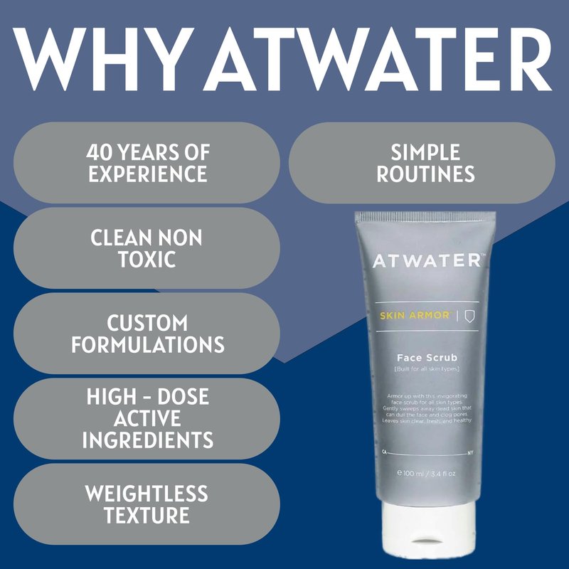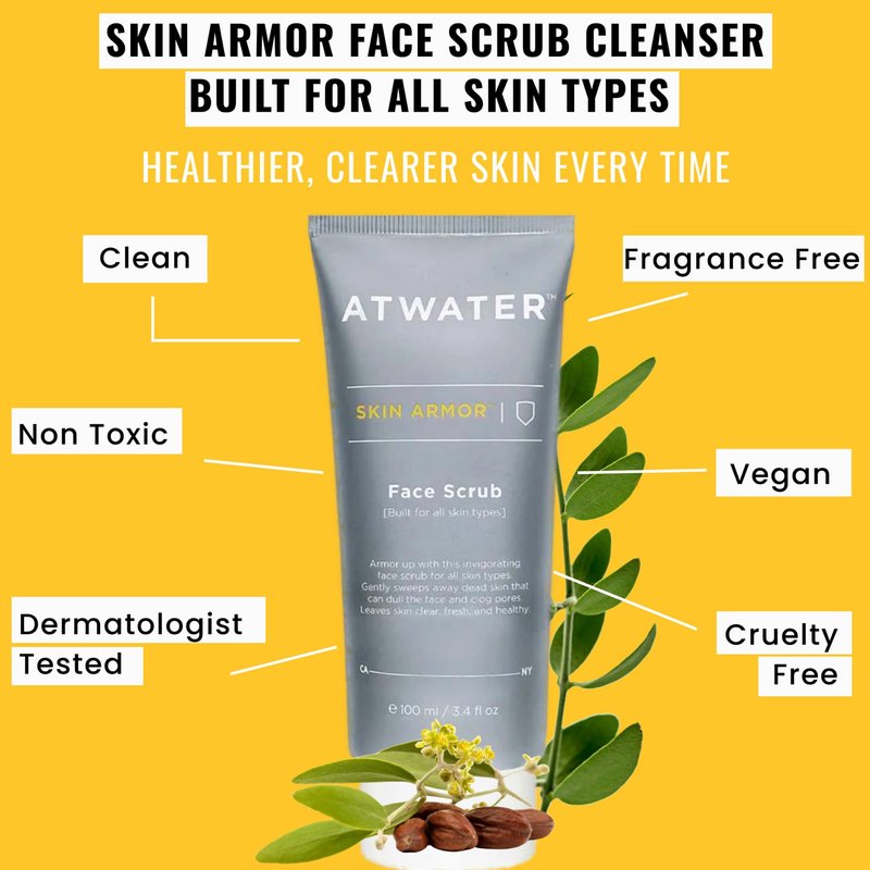 ATWATER Skin Armor Exfoliating Face Scrub,Men’s Facial Cleanser - Smoothes and Cleans Skin to remove Dead Skin - Travel Size Mens Face Exfoliator Leaving you Fresh and Vibrant - 3.4 oz