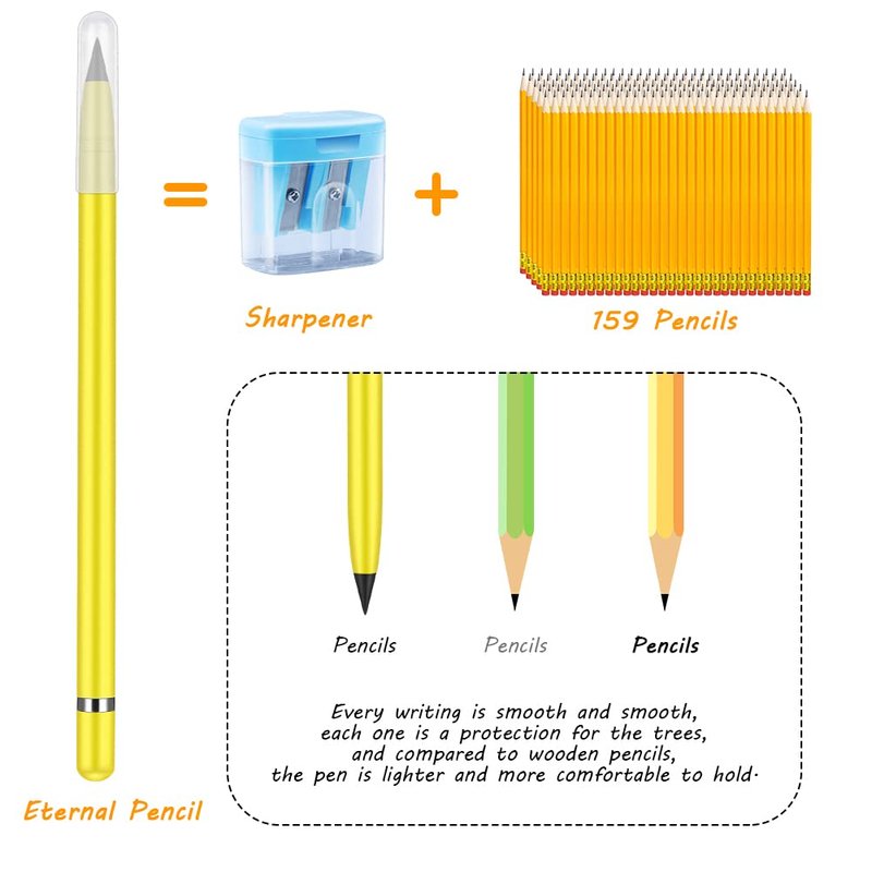 - 🌸【INKLESS PENCIL SET】This everlasting pencil is made of graphite, with clear and long-lasting writing, which can save you the time of sharpening or adding ink, and avoid the trouble of sharpening pencils, the appearance is stylish and beautiful, saving time and energy, making your Children pay more attention when studying. Sufficient quantity can meet your daily writing and replacement needs.