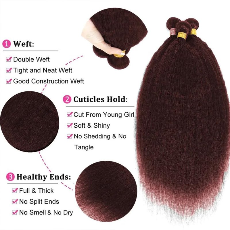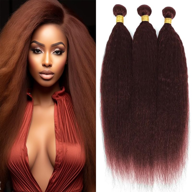 - Human Bundles Hair Color:Brazilian Yaki Straight Human Hair 3 Bundles,Human Hair Color 33,Soft and Buncy,100(+/-5)g Each Bundle.