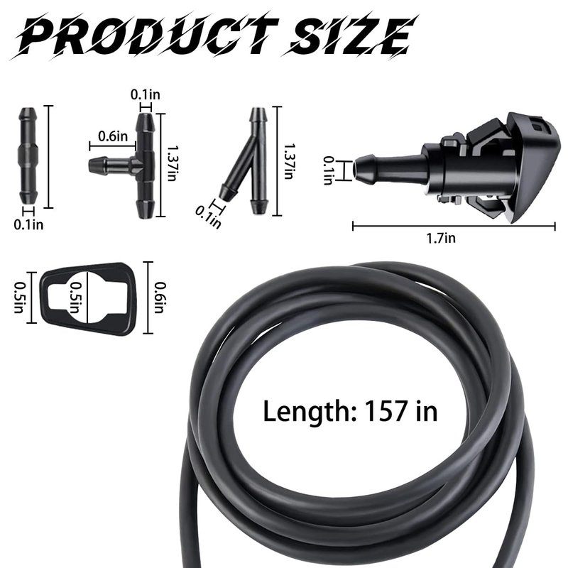 - 【High Quality Material】: The windshield washer hose kit is made of high quality rubber material, soft and flexible, strong and durable for long-term use. The front windshield nozzle is made of high quality plastic, which is tough, not easy to break, light weight and corrosion resistant, which can effectively extend the service life of the wiper blade.