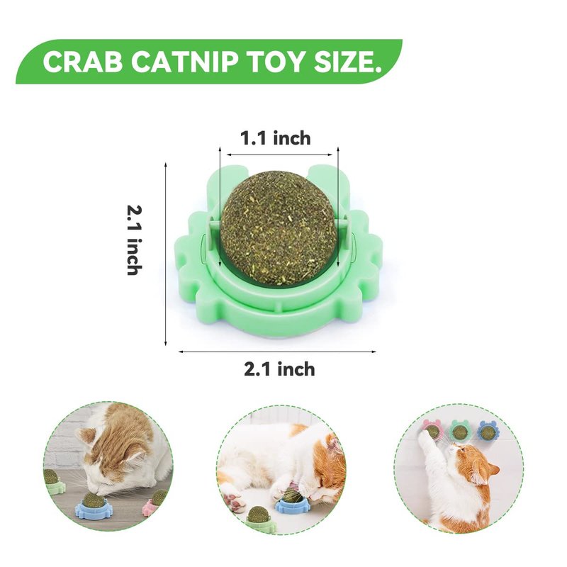Aucenix Catnip Balls Toy for Cat, Wall Catnip Roller for Cat Licking, Teeth Cleaning Dental Edible Kitten Toy, Natural Rotating Crab Cat Toy (Green)