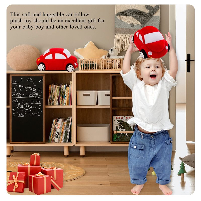 - 【Applicable Occasions】: Cute car plush toys can be placed as decorative items in the living room, bedroom, office, and store. Red car plush toy shape design is very realistic and cute. Children are very easy to be attracted to its external image. Children who like small cars will love it.