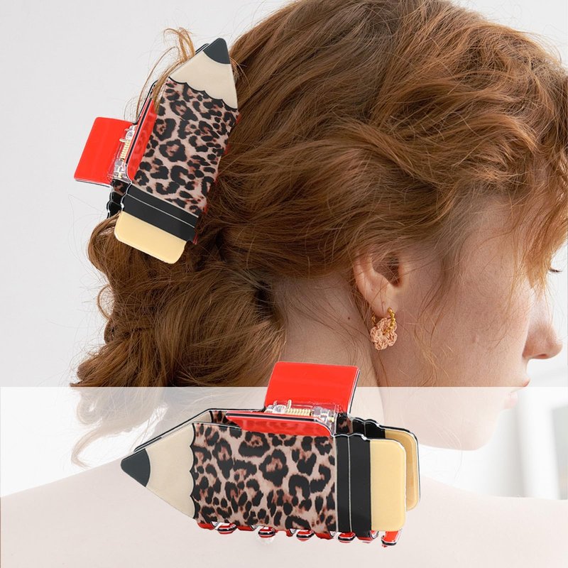 - 【High Quality Materials】These cute pencil hair claw clips for women and girls are made of durable and lightweight acrylic material with fun pattern on the surface. And it's easy to wear. The spring is very sturdy and easy to compress. Whether your hair is dry or wet, it is enough to help keep it in place! Teeth are long enough to bite well. Its size is perfect for thick, curly, or straight hair!