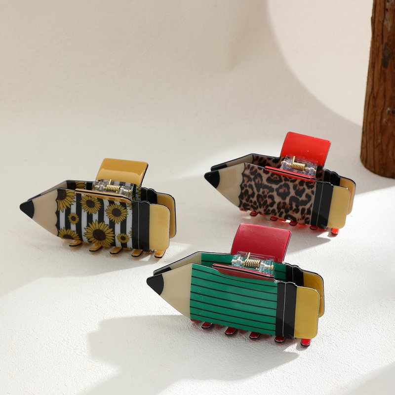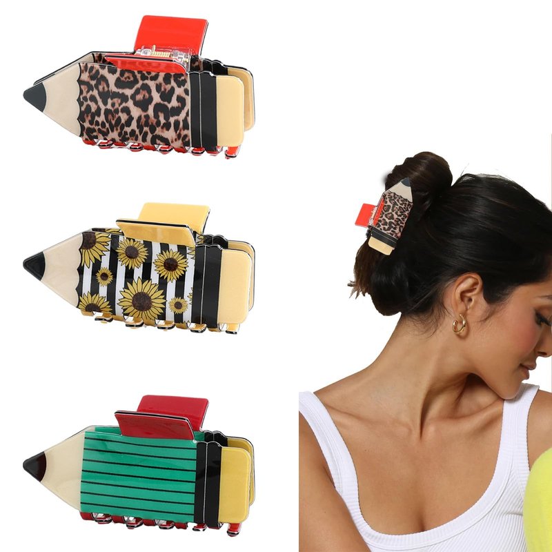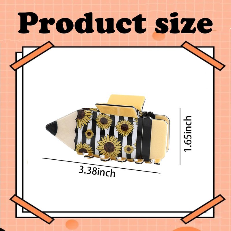 - 【Teacher Appreciation Hair Claw Clips】A Package include 3pcs fun pencil hair claw clips with different pattern, including pencil, sunflower and leopard print, which is suitable for costume. In additional, use these fashionable and unique pencil hair claw clips to express your gratitude to teachers in life - perfect for returning to class and thanksgiving Christmas gifts for teachers!