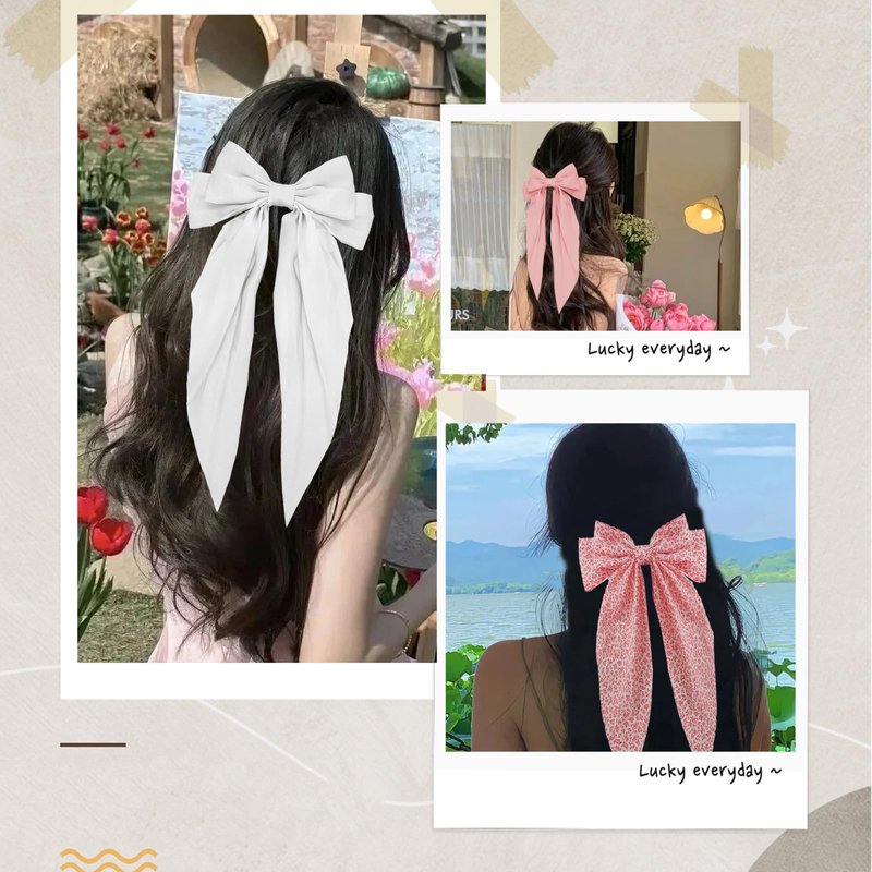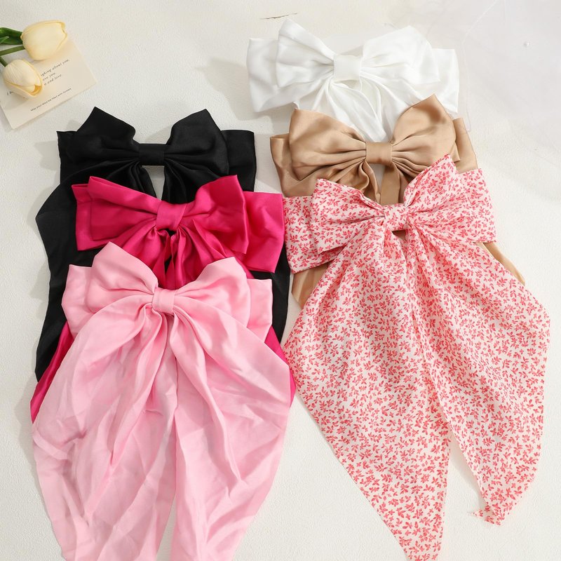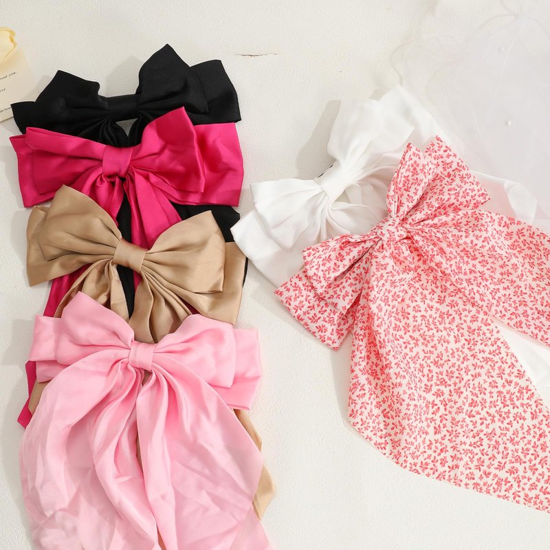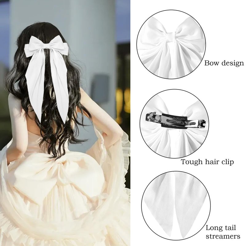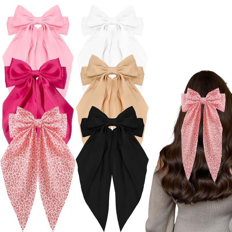 AUDTOPE 6Pcs Hair Bows for Women Girls Hair Ribbon,Oversized Long Tail Hair Bows Hair Barrettes Silky Satin Hair Bows Hair Clips for Women Ponytail Holder Bow Hair Accessories Bowknot Aesthetic