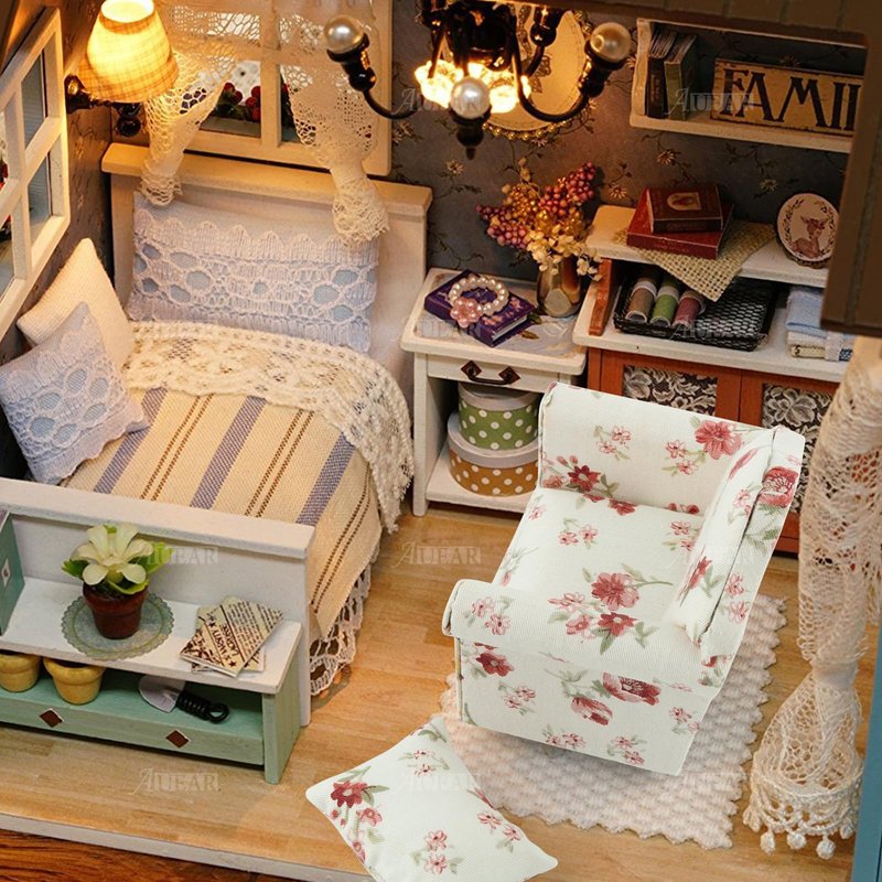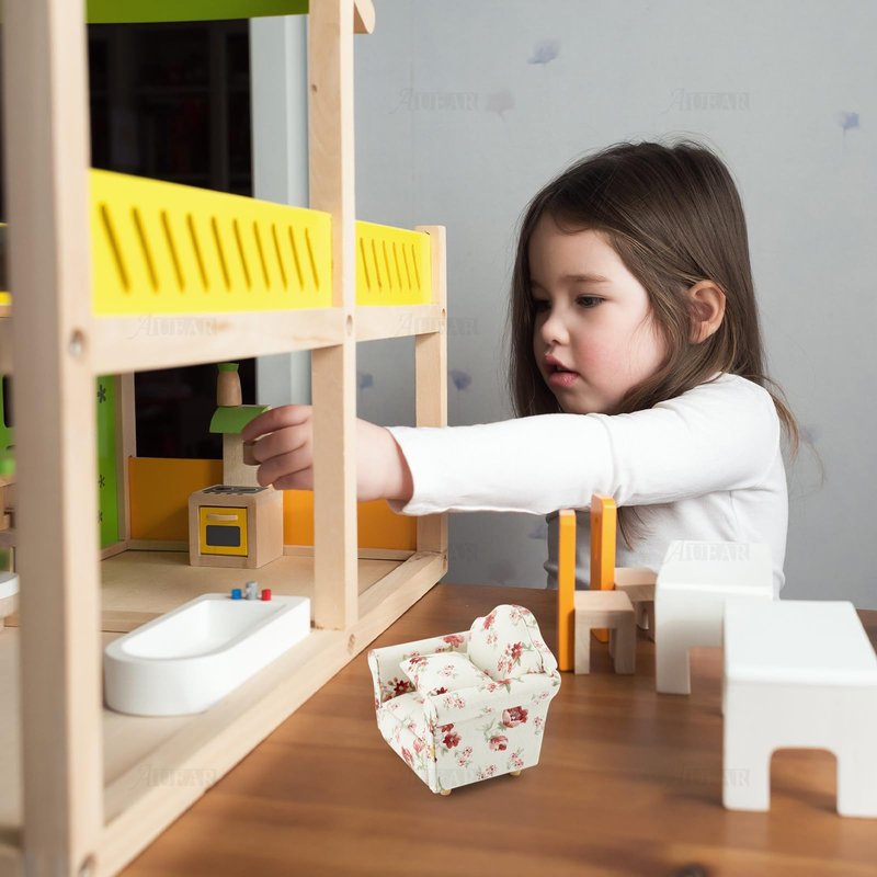 AUEAR, 1:12 Mini Wooden Sofa Arm Chair Furniture for Living Room